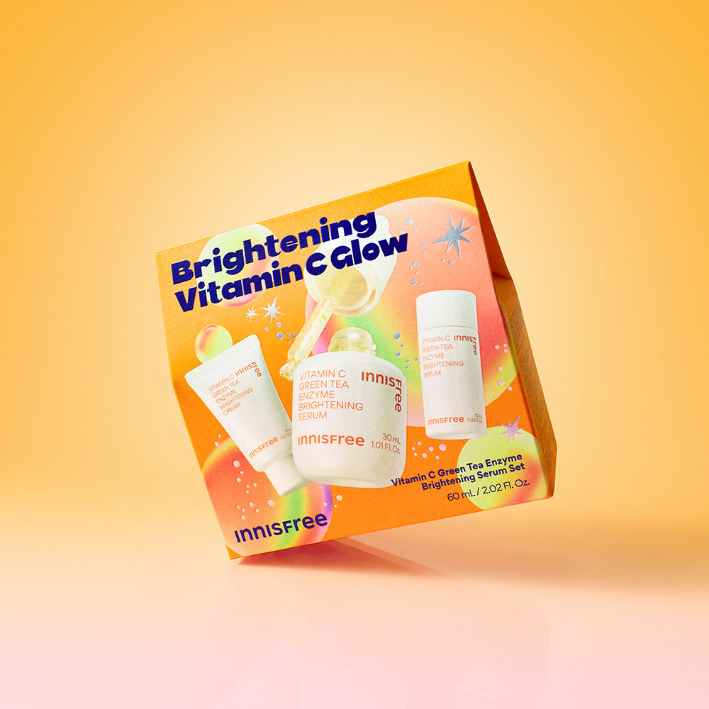 The Innisfree Vitamin C Green Tea Enzyme Brightening Serum Holiday Set combines the power of Jeju Green Tea Enzymes and pure Vitamin C to visibly improve dullness, dark spots, and uneven tone. This potent yet gentle formula rejuvenates your skin, revealing a smooth, radiant complexion with every use. Infused with antioxidants and natural actives, it helps brighten, clarify, and protect your skin barrier. Perfect as a luxurious self-care treat or a thoughtful holiday gift — for skin that glows as bright as your festive spirit. 💛🌿